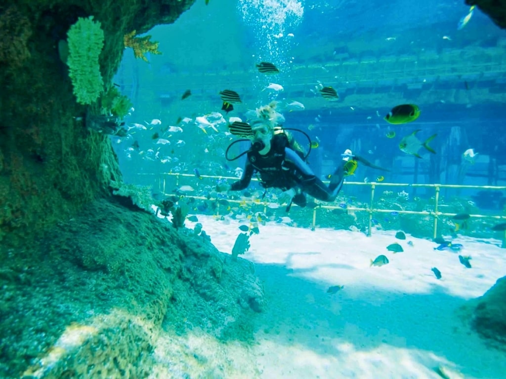 🐠 محتوى الحوض: حطام سفينة وأكثر من ٢٠٠٠ نوع من الأسماك