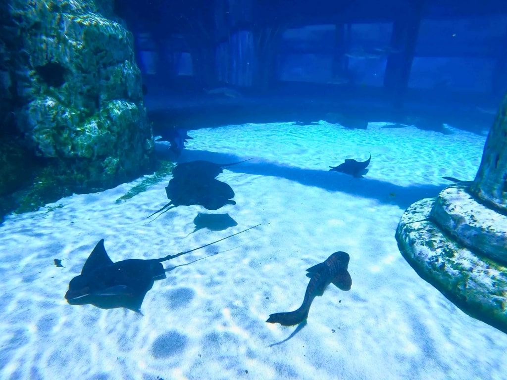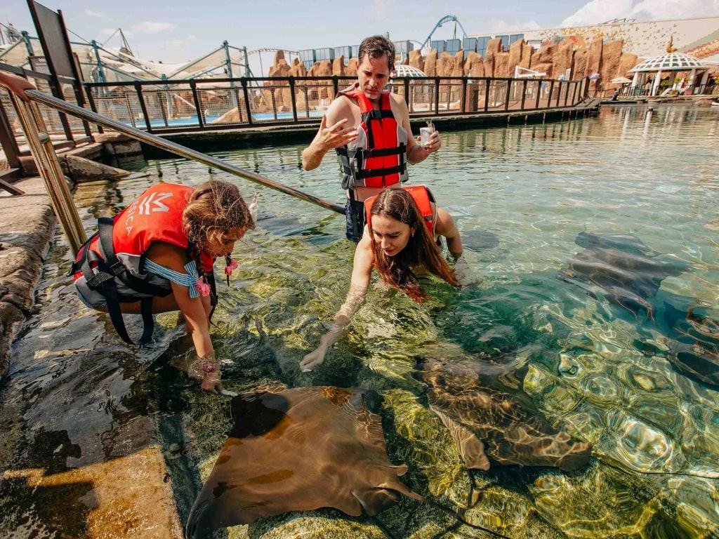 🌊 الموقع: مياه ضحلة (إطعام ولمس أسماك الراي اللاسعة)