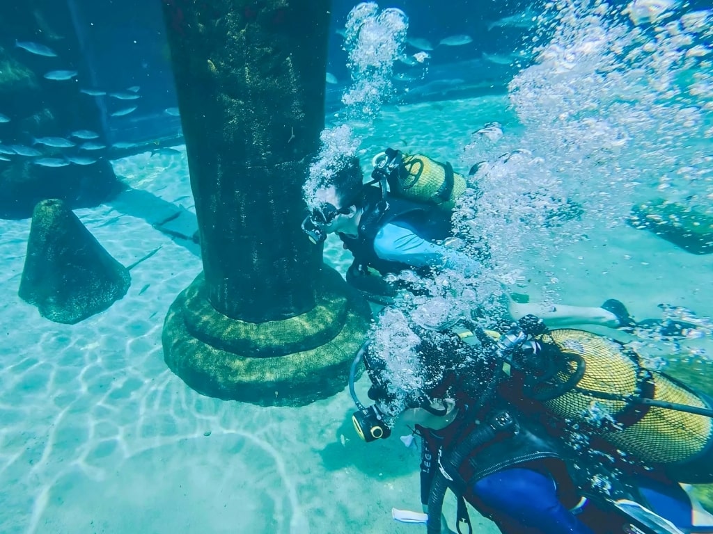 تجمع هذه التجربة، التي تُدار بمرشدين محترفين وبرسوم إضافية، بين الأمان والإثارة. مع سعة محدودة، تُعدّ هذه التجربة مثاليةً لمن يبحث عن تجربة فريدة تحت الماء. كما تتوفر خدمات التصوير الفوتوغرافي والفيديو الاحترافية مقابل رسوم إضافية، مما يُتيح لك توثيق كل لحظة من غوصتك.